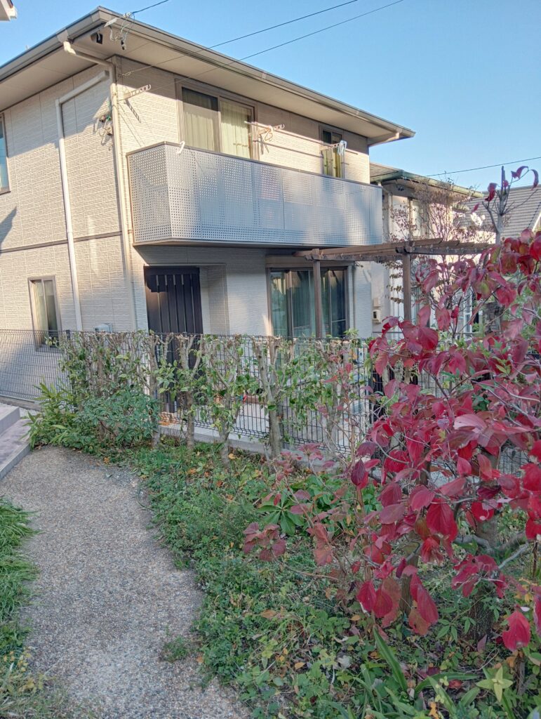 生垣は、高さを低くして欲しいとの事でしたので、何年も前に切り詰めたであろうポイントまで切り詰めさせていただきました、。