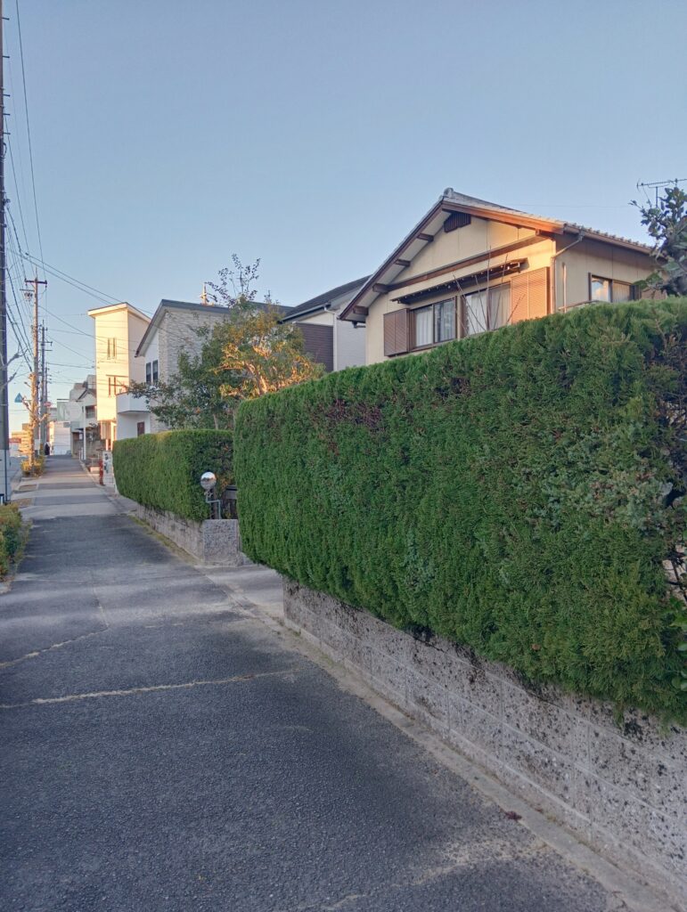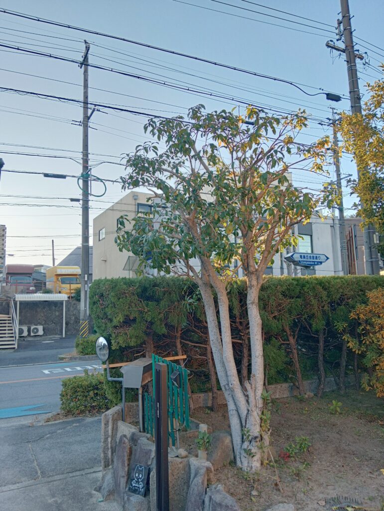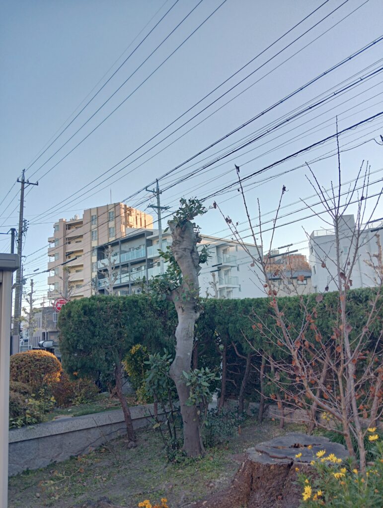 岡崎市にて、カキの切り詰め、キンモクセイの切り詰め、ゲッケイジュの切り詰め、半枯れモミジの伐採、カイヅカイブキの生垣の刈り込み作業をさせていただきました。