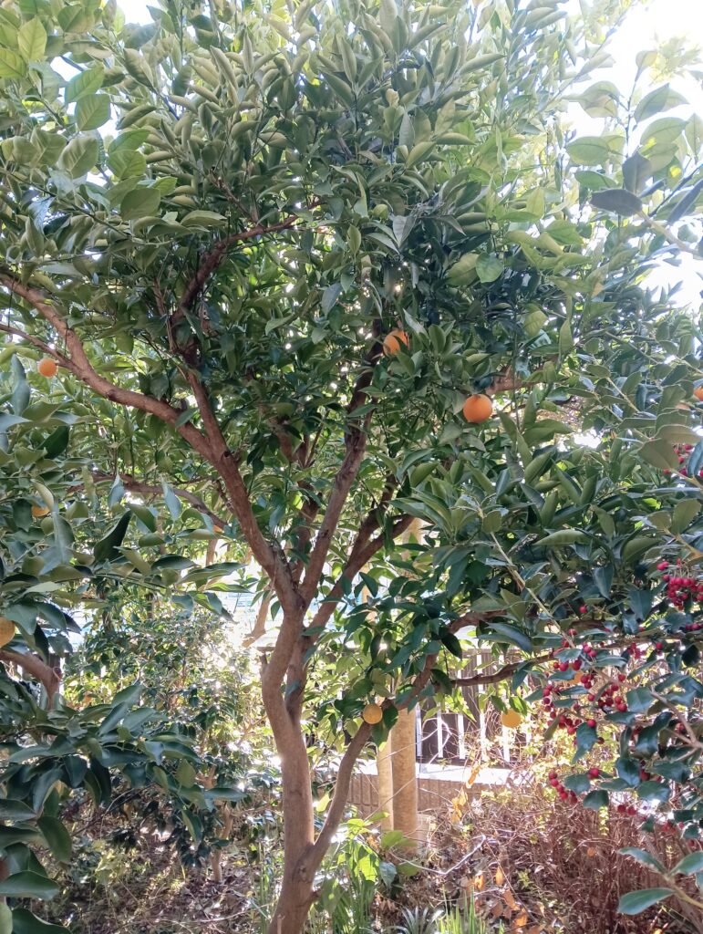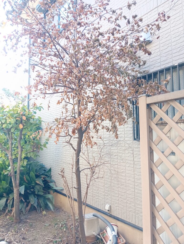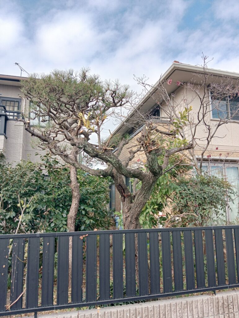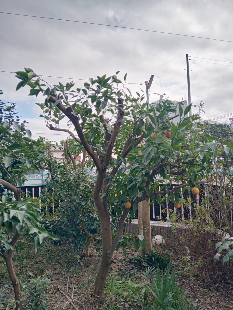岡崎市にて、オレンジの切り詰め、セイヨウヒイラギの切り詰め、サカキ(枯れ木)の伐採、クロマツの剪定、ウメの切り詰め作業をさせていただきました。